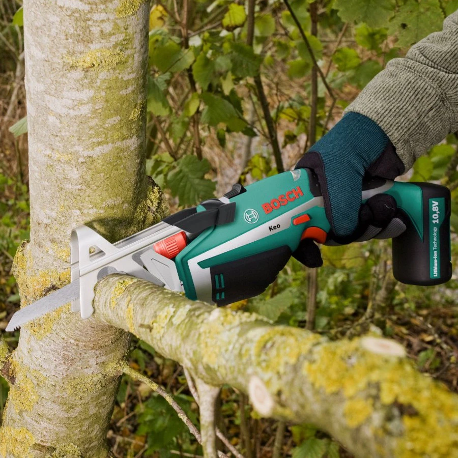 The Bosch Keo Cordless Saw provides effortless cutting giving versatile help around the house and garden. Simply squeezing the trigger cuts branches up to 80mm thick. Enables 30 to 190 cuts per battery charge. And with 5 blades for different uses and a carry case you’ll be set to do any job in the garden or home.
