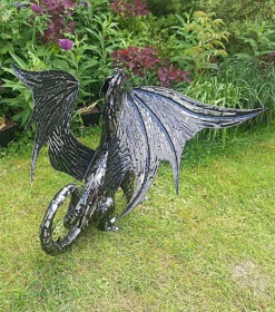 Mystical Dragon Garden Sculpture In Platework Metal – 56cm Tall