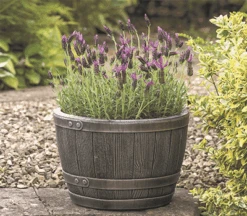 Blenheim Black Oak & Pewter Effect Half Barrel Planter – 40cm