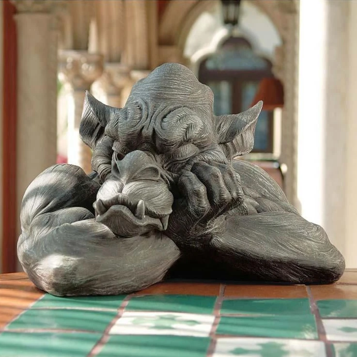 The artist has sculpted this with sharpened fangs and muscled forearms, then cast him in quality designer resin with a greystone finish as a menacing presence in home or garden.