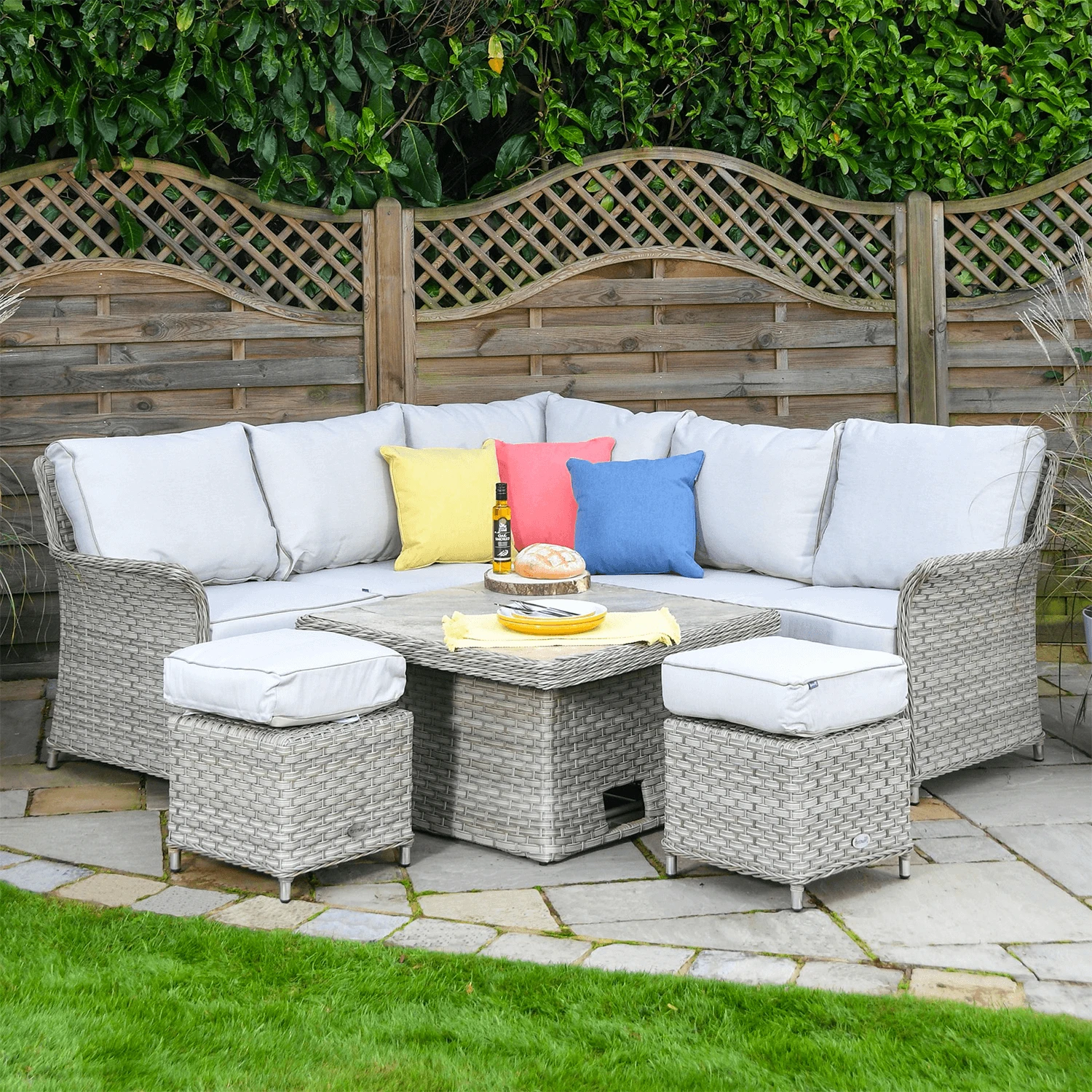 This Hartman Heritage Tuscan Square Casual Dining Set is spacious, versatile and fantastic for entertaining guests. Whether you’re having a sit-down meal, a couple of drinks at the weekend or just a chat over a cup of tea, this furniture set has got you covered. It has a height adjustable table, with a stunning Tuscan ceramic glass top, which quickly and easily converts from coffee table to casual dining table in seconds with the easy adjust function.