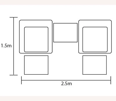 Two footstools complement the set, as well as a handy side table, with attractive Tuscan ceramic glass top, where you can place your snacks and refreshments, meaning you won’t have to get up for anything.