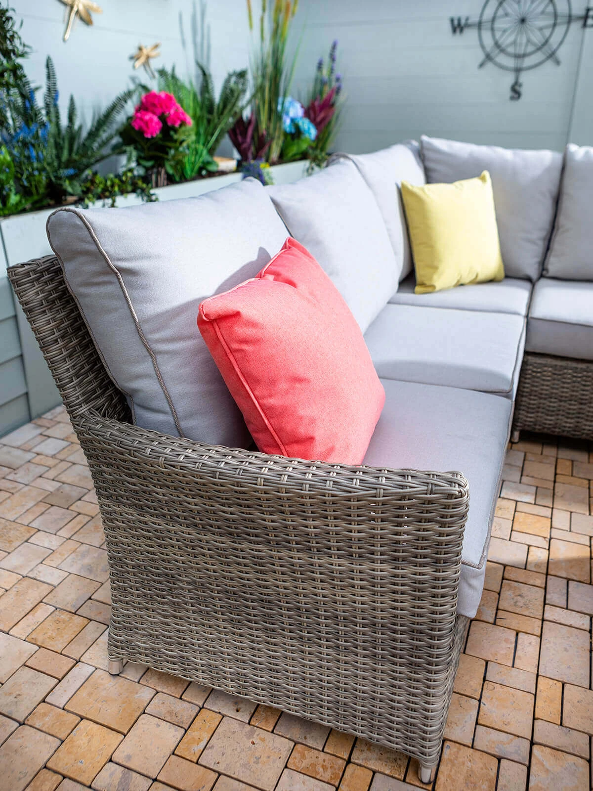 They utilise a clever system of perforated material wrapped around rapid-dry foam, allowing water to permeate through the cushion and then dry naturally – no harm done. As well as being stylish and comfortable, these cushions are also moisture, mildew and UV resistant. They can be stored outside all summer long, ready to be used quickly and conveniently, as and when they’re needed.