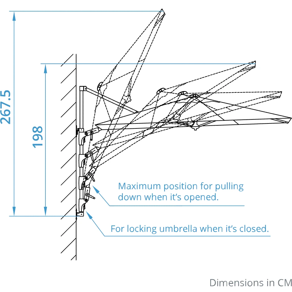 - Kettler 2.5m Wall Mounted Parasol with Fixings