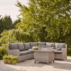 - Kettler Palma Grande Fire Pit Corner Sofa Set in White Wash / Taupe