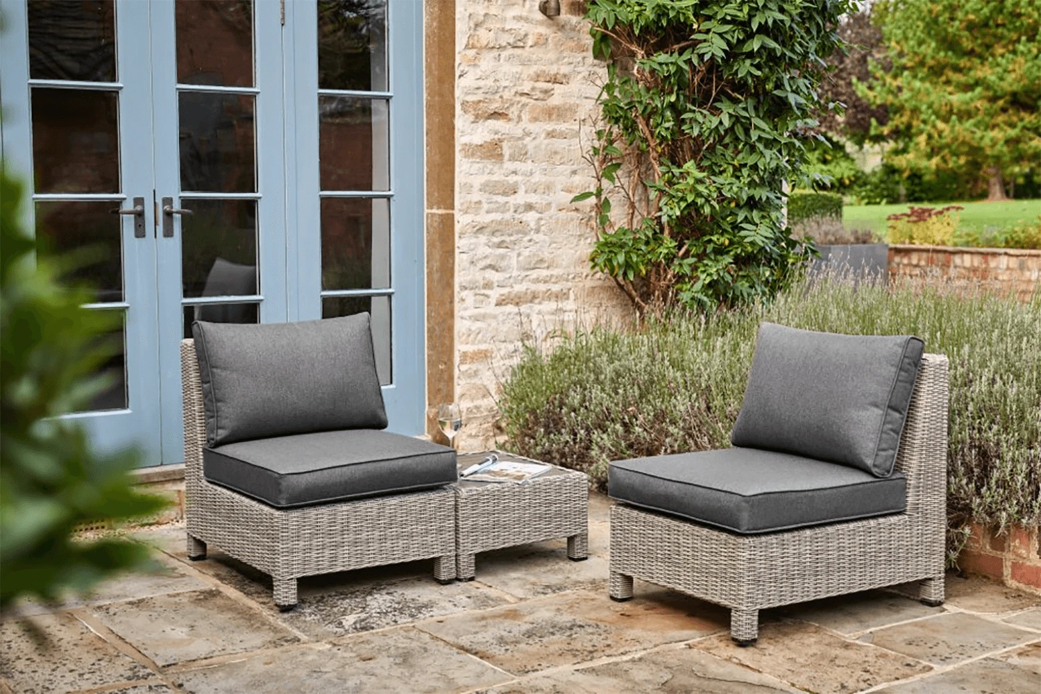 The stunning Kettler Palma Low Companion Set would be a perfect addition to your garden or conservatory. Consisting of two wide chairs with soft cushions and a matching side table/footstool, you are bound to enjoy entertaining your guest for hours on this comfy set.