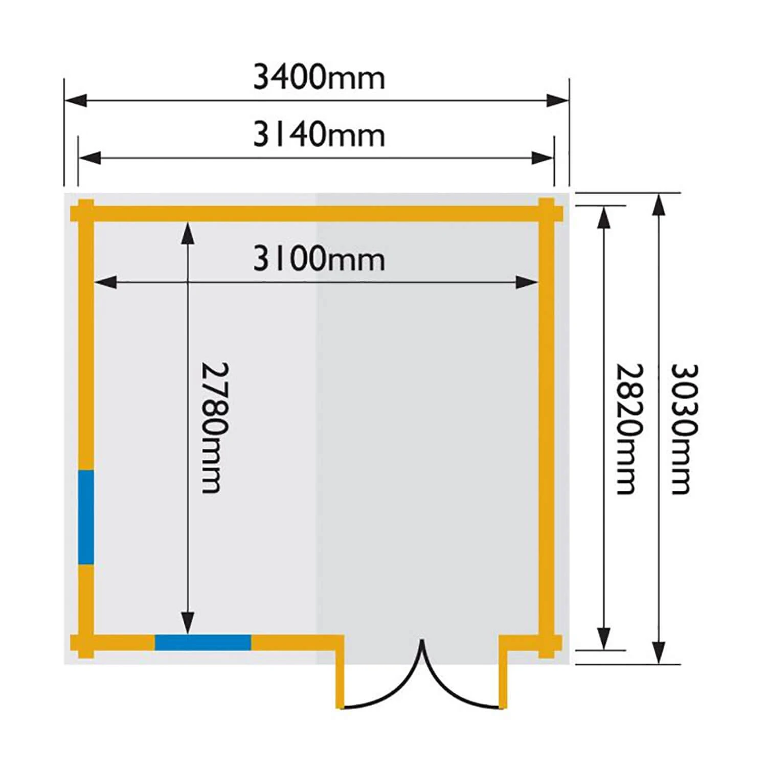 External Dimensions (includes roof overhang): Height: 236cm x Width: 340cm x Depth: 303cm